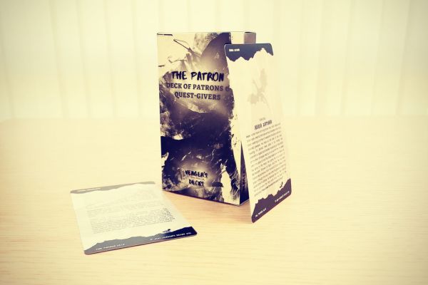 Each card in your deck lays out a unique non-player character or quest-giver you can use in your game, someone the party might meet in a tavern or on the road maybe, that person layered in hooks, conflicts, and 100% inspiration to make them more memorable and useful for what's happening in the game. You can use these curious individuals to spark a new encounter, quest, or adventure, but can also sling them in if the players say they want to chat with someone and you need access to a fleshed-out NPC on the fly with a tale to tell.